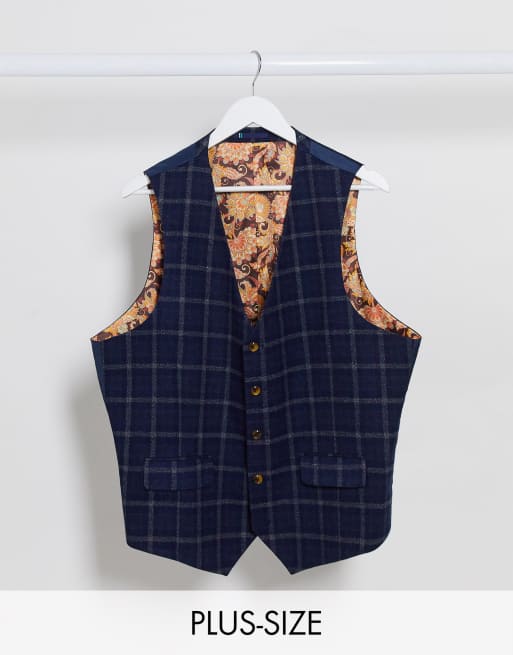 Chaleco de traje de corte slim con estampado de recuadros Harry Brown Plus