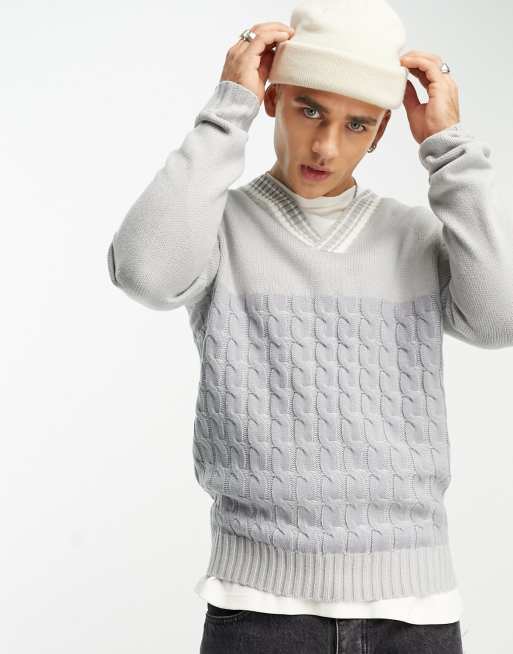 Jersey gris con cuello de pico de punto de ochos de Harry Brown