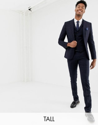 Traje de corte slim a cuadros en azul marino y dorado de Harry Brown Tall