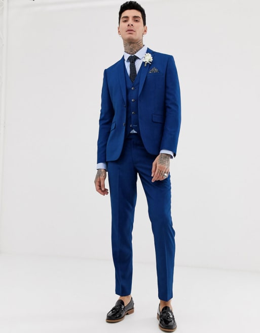 Traje de corte slim en tejido texturizado azul de Harry Brown Wedding