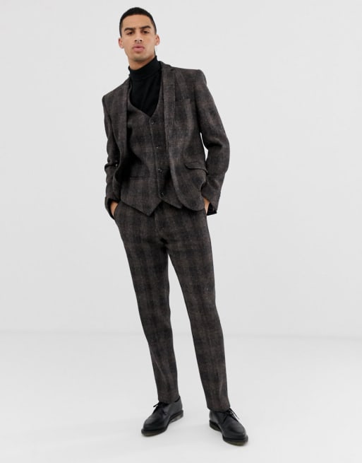 Traje entallado con diseño de tweed Harris en marrón de Heart & Dagger