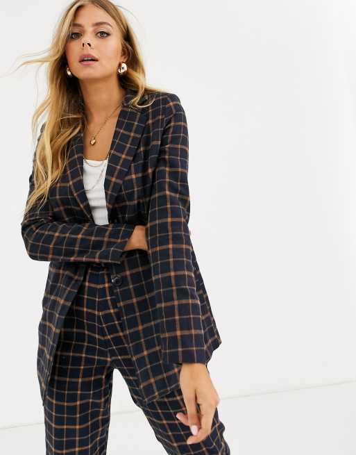 Americana larga estilo boyfriend a cuadros azul marino y naranja de Heartbreak