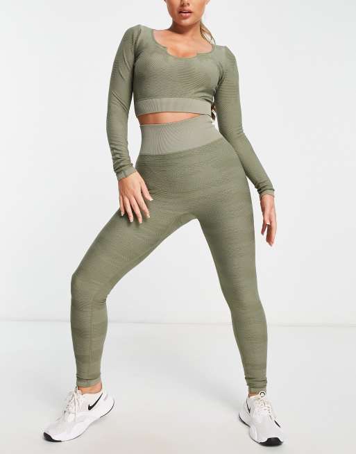 Leggings caquis sin costuras con diseño de camuflaje texturizado de HIIT