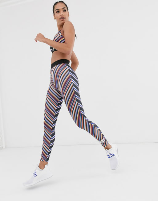 Leggings y sujetador con estampado de rayas en contraste de HIIT