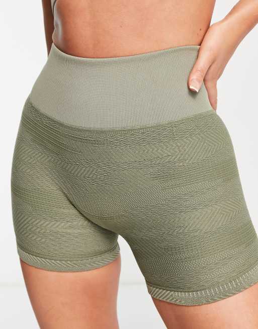Pantalones cortos caquis ajustados sin costuras con diseño de camuflaje texturizado de HIIT