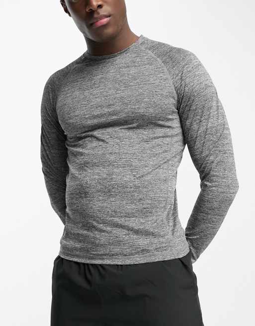Top deportivo gris jaspeado de manga larga de HIIT