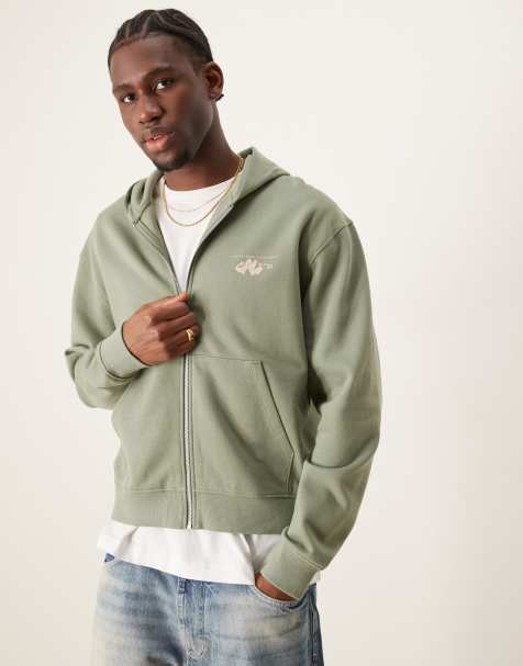 Sudadera verde de corte cuadrado con capucha, cremallera y detalle de tachuelas de COLLUSION