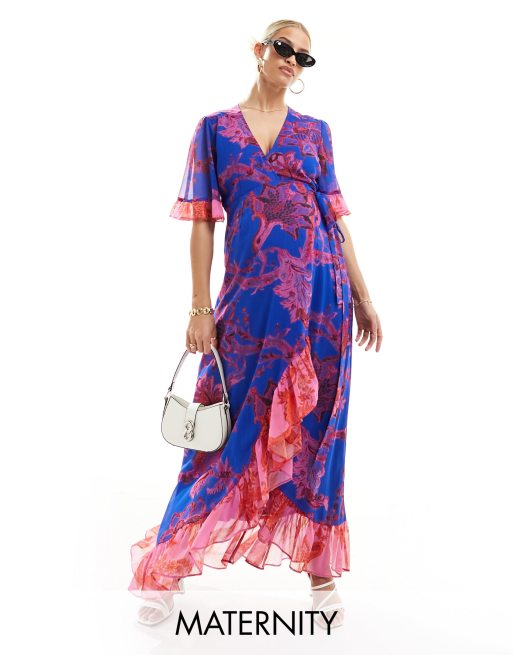 Vestido largo cruzado con estampado floral variado de Hope & Ivy Maternity