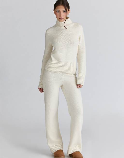 Pantalones blanco marfil de punto de canalé de lana de merino Lara de House of CB