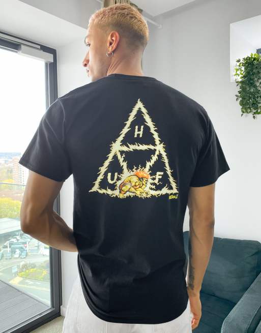 Camiseta negra con diseño triangular triple Blanka de HUF x Street Fighter II