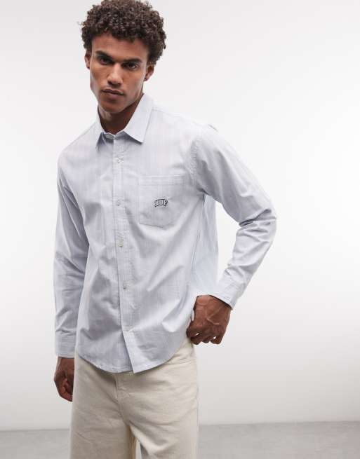HUF - Camisa Oxford azul a rayas de manga larga Classic Arch