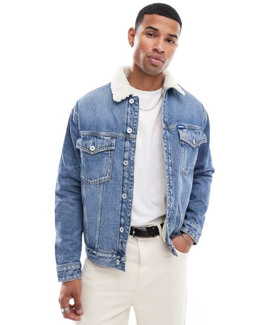 Chaqueta vaquera de estilo camionero con cuello de sherpa y lavado azul medio Dex de HUGO Blue