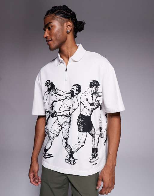 Camisa beis con estampado gráfico Duboxie de HUGO Red