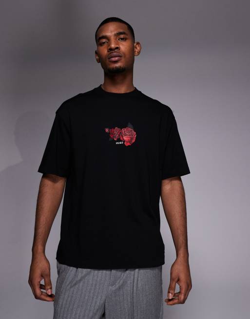 Camiseta negra extragrande con logo estampado de HUGO Red
