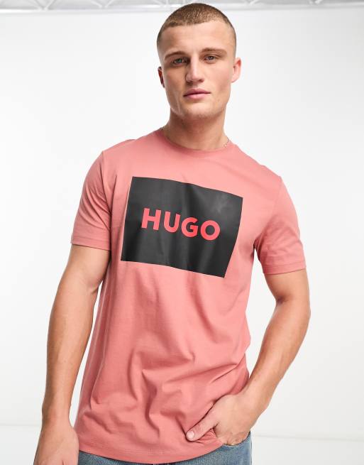 Camiseta rosa medio con recuadro del logo Dulive222 de HUGO
