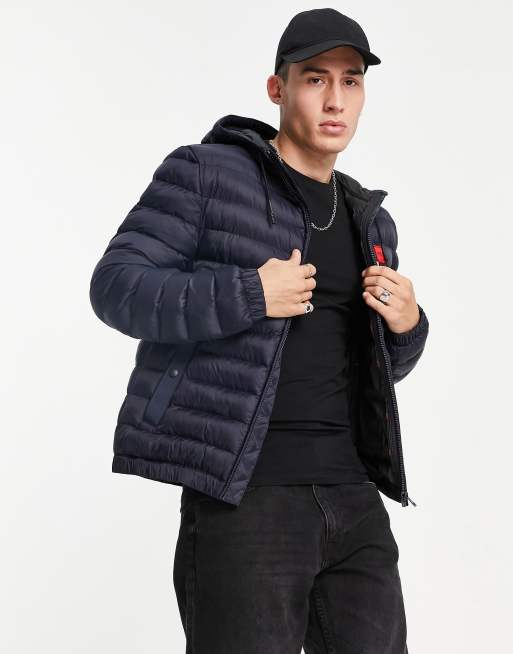 Chaqueta azul marino guateada con capucha y recuadro con logo Balin2141 de HUGO