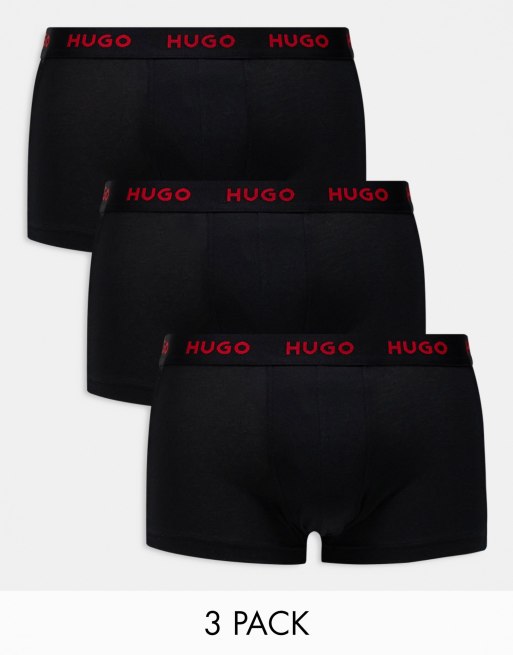 Pack triple de calzoncillos negros con logo rojo en la cinturilla de HUGO Bodywear