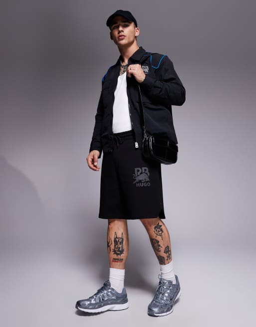 Pantalones cortos de chándal negros extragrandes con logo plateado Deswick de la colección cápsula Red Bull Racing de Hugo