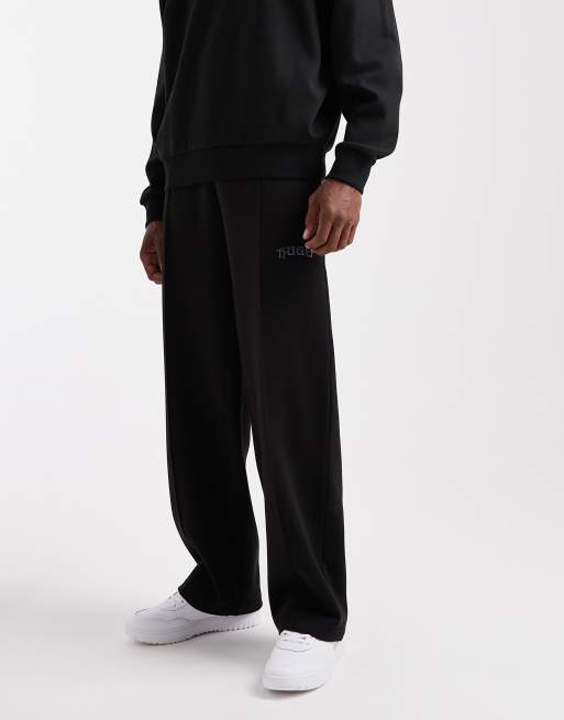 Pantalones de chándal negros con costura delantera, bajo amplio y logo plateado Dadsinolo de HUGO RED