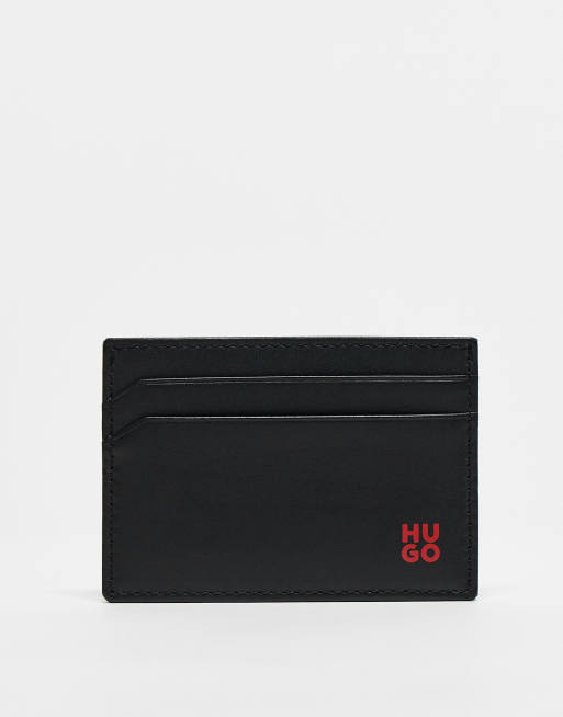 Tarjetero negro con logo de cuero Tibby de HUGO Red