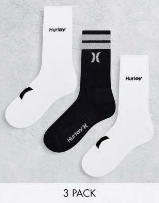 Pack de 3 pares de calcetines negros Terry Print de Hurley