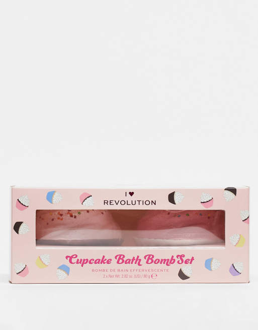 Dúo de sales de baño con forma de cupcakes de fresa y red velvet de I Heart Revolution