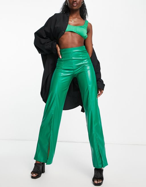 Pantalones verdes de pernera ancha y efecto cuero de I Saw It First (parte de un conjunto)