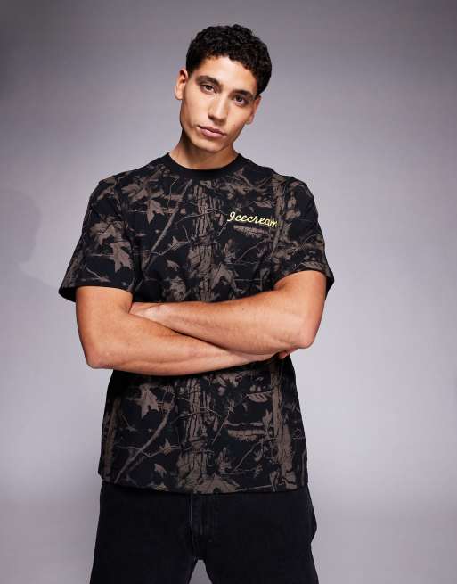 Camiseta negra con estampado integral de camuflaje de árboles de ICECREAM