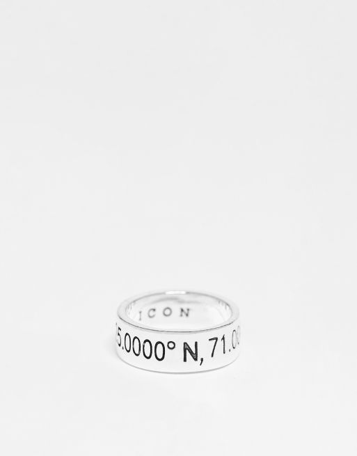 Anillo plateado de banda con diseño de coordenadas de Icon Brand