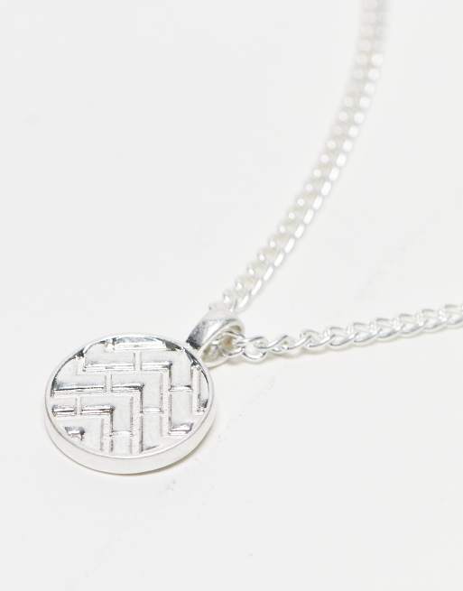 Collar plateado estilo cadena barbada con colgante de moneda de Icon Brand