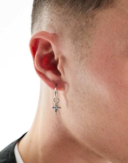 Pendientes plateados con colgante de cruz Reset de Icon Brand
