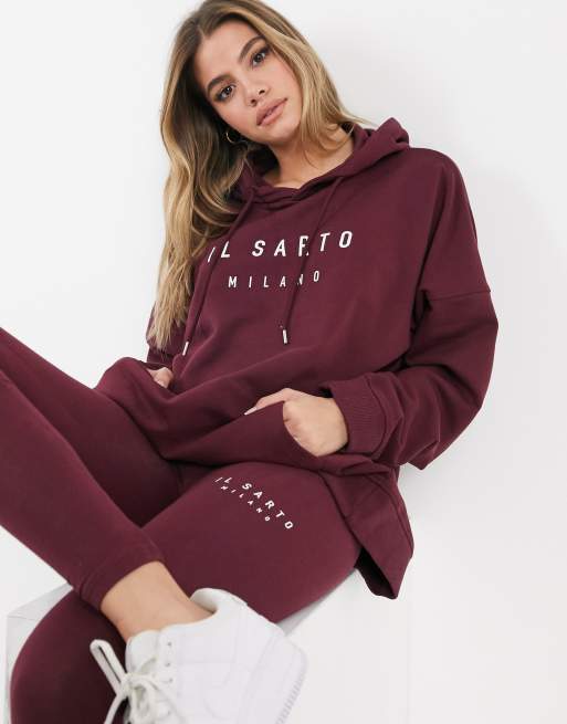 Sudadera con capucha burdeos extragrande de Il Sarto (parte de un conjunto)