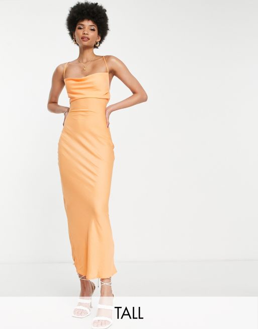 Vestido midi naranja con escote desbocado de satén exclusivo de In The Style Tall