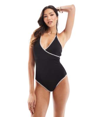 Bañador negro cruzado en la parte delantera con pespuntes en contraste de In The Style
