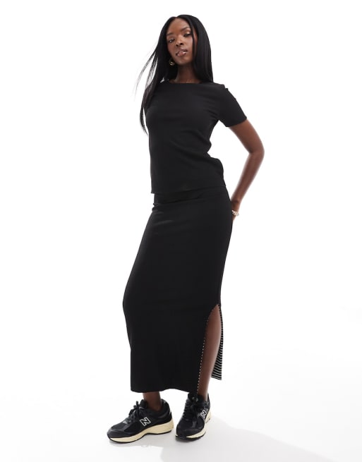 Conjunto negro a rayas de camiseta con diseño reversible y falda midi de In The Style