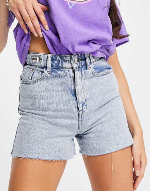 Pantalones cortos vaqueros azules con lavado ácido y bajos sin rematar de In The Style