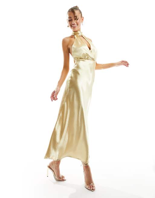 Vestido largo dorado con detalle de gargantilla y abertura de satén de In The Style