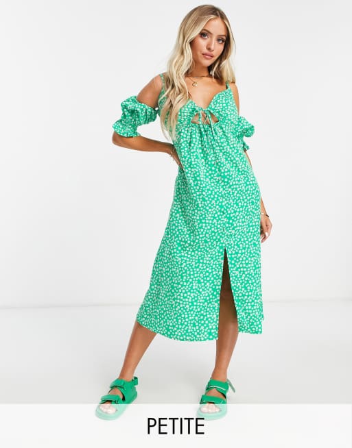 Vestido midi verde de tirantes y manga corta con estampado floral de Influence Petite