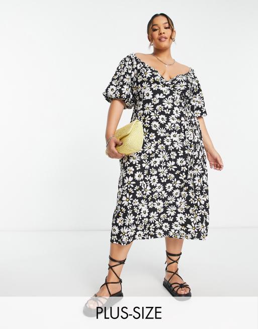 Vestido midi cruzado con estampado de margaritas de Influence Plus