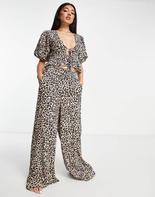 Top corto y pantalones playeros con estampado de leopardo de Influence