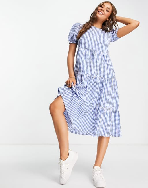 Vestido midi a cuadros vichy azules con lazadas en la espalda de Influence