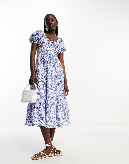 Vestido midi azul estampado de popelina de algodón de Influence