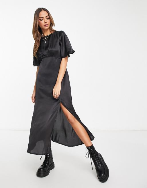 Vestido midi negro con mangas fluidas con detalle de encaje de Influence