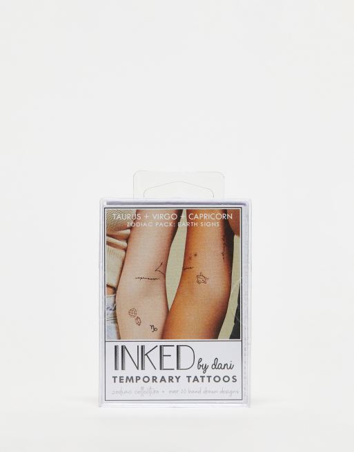 Pack de tatuajes temporales con diseño de signos Tauro, Virgo y Capricornio de INKED by Dani