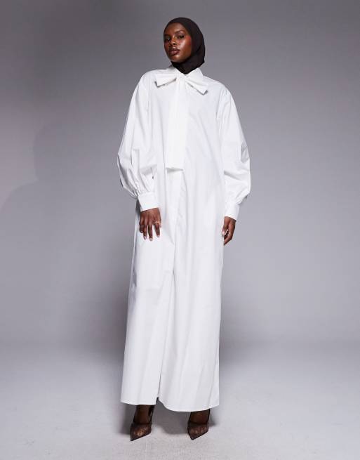 Vestido largo blanco extragrande con detalle de botones y lazo de popelina de algodón de IYAL