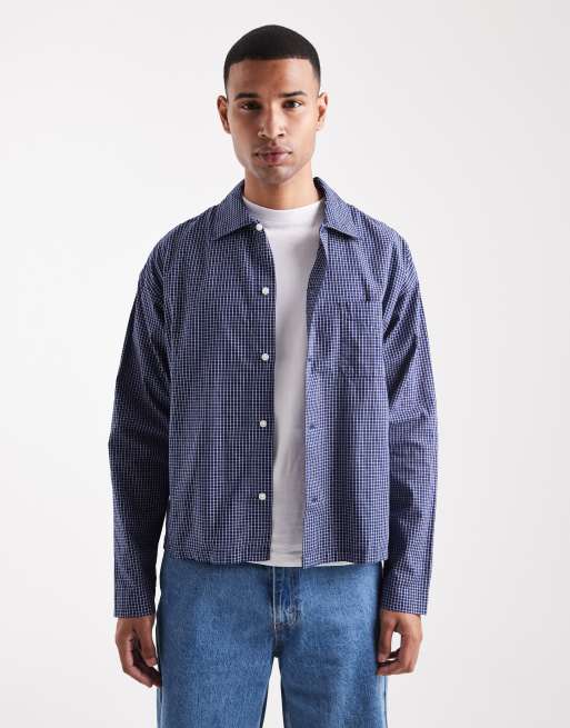 Camisa azul a cuadros de corte cuadrado de Jack & Jones