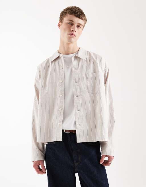 Camisa beis a rayas negras de corte cuadrado y manga larga de Jack & Jones