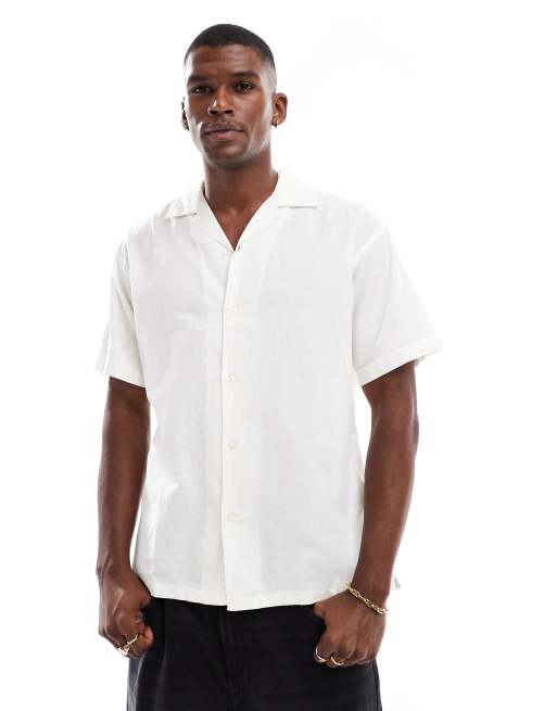 Camisa blanca con cuello de solapas de mezcla de lino de Jack & Jones
