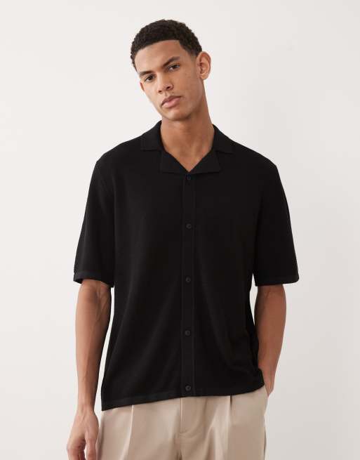 Camisa negra abotonada con cuello de solapas de punto de Jack & Jones