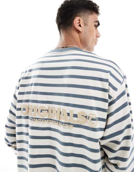 Camiseta a rayas azules extragrande de manga larga de Jack & Jones